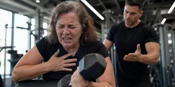 A atriz se exercitando em casa, em pleno domingo No Globo de Ouro, ela surgiu com cabelos curtos e grisalhos...